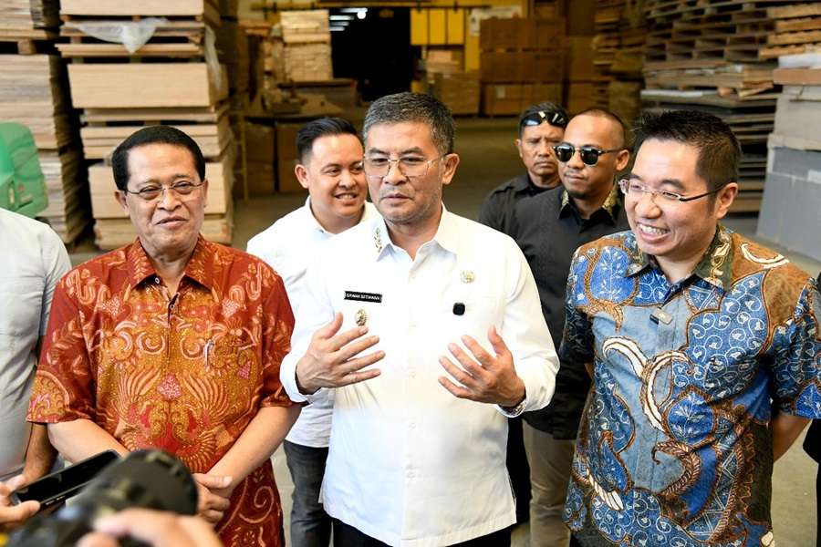 Dalam peninjauan di workshop pabrik, Wagub Erwan juga mengamati bahan baku yang digunakan PT KMS. Ia menyebut seluruh bahan baku berasal dari dalam negeri, dan produk mebel yang dihasilkan dipasarkan untuk memenuhi kebutuhan nasional.