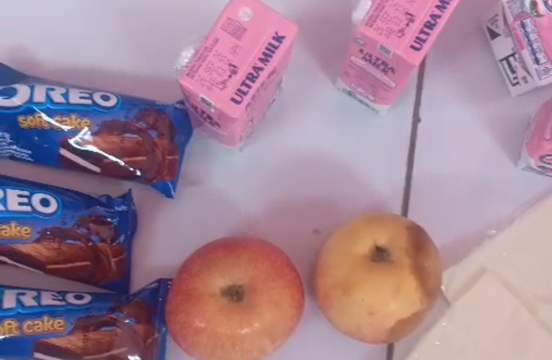 Berdasarkan keterangan orang tua siswa, dalam satu paket MBG tersebut siswa hanya menerima satu buah apel yang kondisinya tidak segar, tiga bungkus biskuit cokelat, serta tiga kotak susu formula. Ironisnya, paket makanan tersebut dibagikan untuk dikonsumsi siswa selama empat hari.